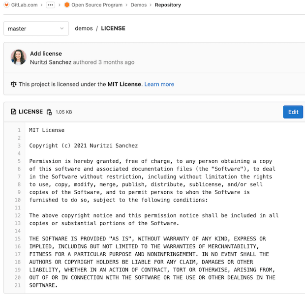 On the left sidebar, select Project information > Details. Take a screenshot that includes a view of the license you've chosen for your project.